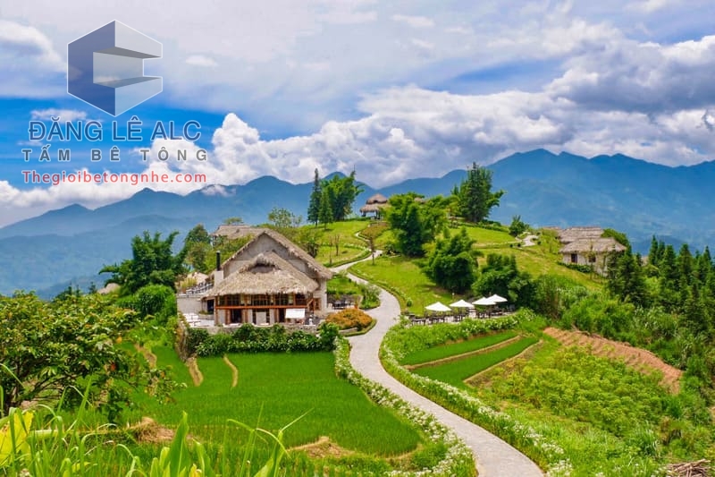 - Tông màu: Nâu – be, hài hòa với cảnh quan vườn hoặc đồi.
